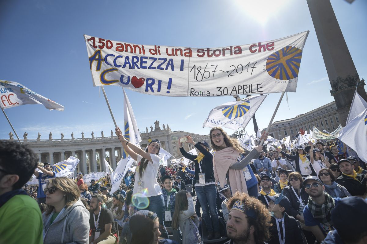 (Foto: giovani durante l'udienza di Papa Leone XIV con l'Azione cattolica).