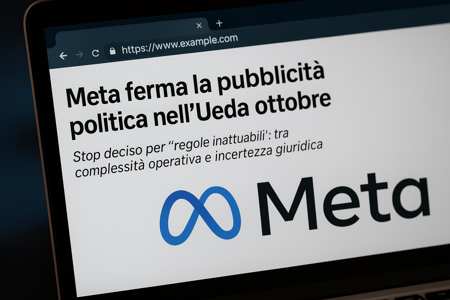 Meta ha annunciato che dal 10 ottobre 2025 smetterà di accettare e mostrare pubblicità relative a temi politici, elettorali e sociali su Facebook, Instagram e Threads in Unione Europea. La ragione ufficiale? Le nuove norme europee previste dal Regolamento Transparency and Targeting of Political Advertising (TTPA), che il colosso americano definisce troppo complesse e cariche di incertezza legale.