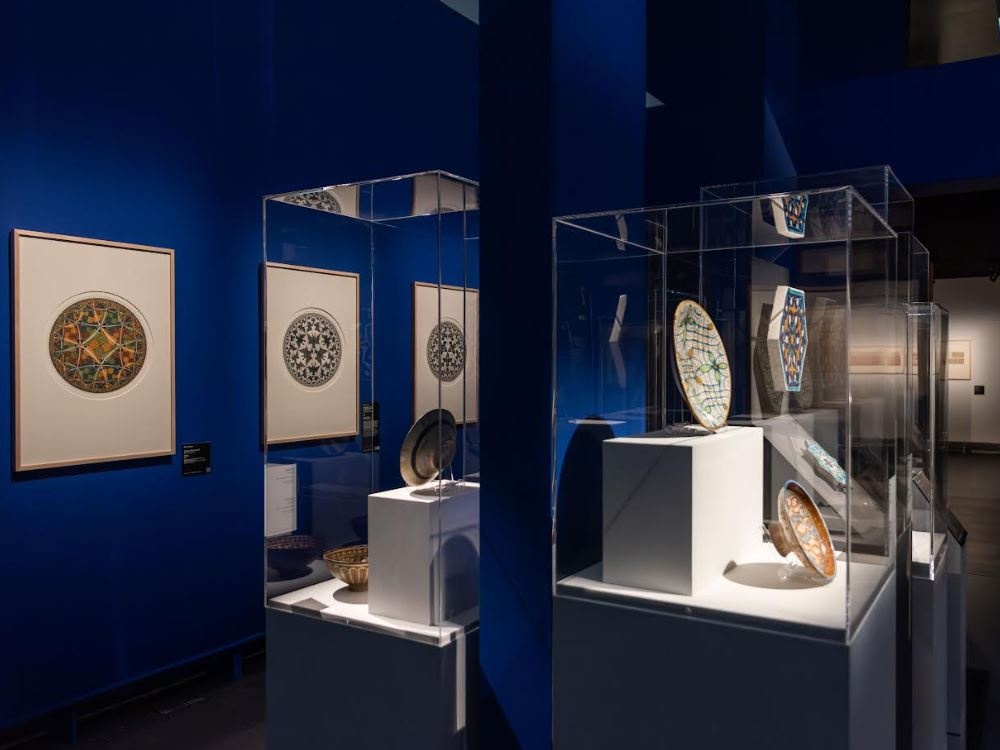 Il percorso si sofferma inoltre sull’influsso dell’arte islamica - in particolare le decorazioni dell’Alhambra di Granada e della Mezquita di Cordova - nella costruzione dell’universo grafico che caratterizza lo stile distintivo dell’artista olandese. I visitatori scopriranno anche il legame tra Escher e gli ambiti applicati al design grafico, dal momento che, nella sua vita professionale, l’artista realizzò non solo stampe artistiche in fogli sciolti, ma anche copertine di libri e riviste, illustrazioni, biglietti d’auguri.